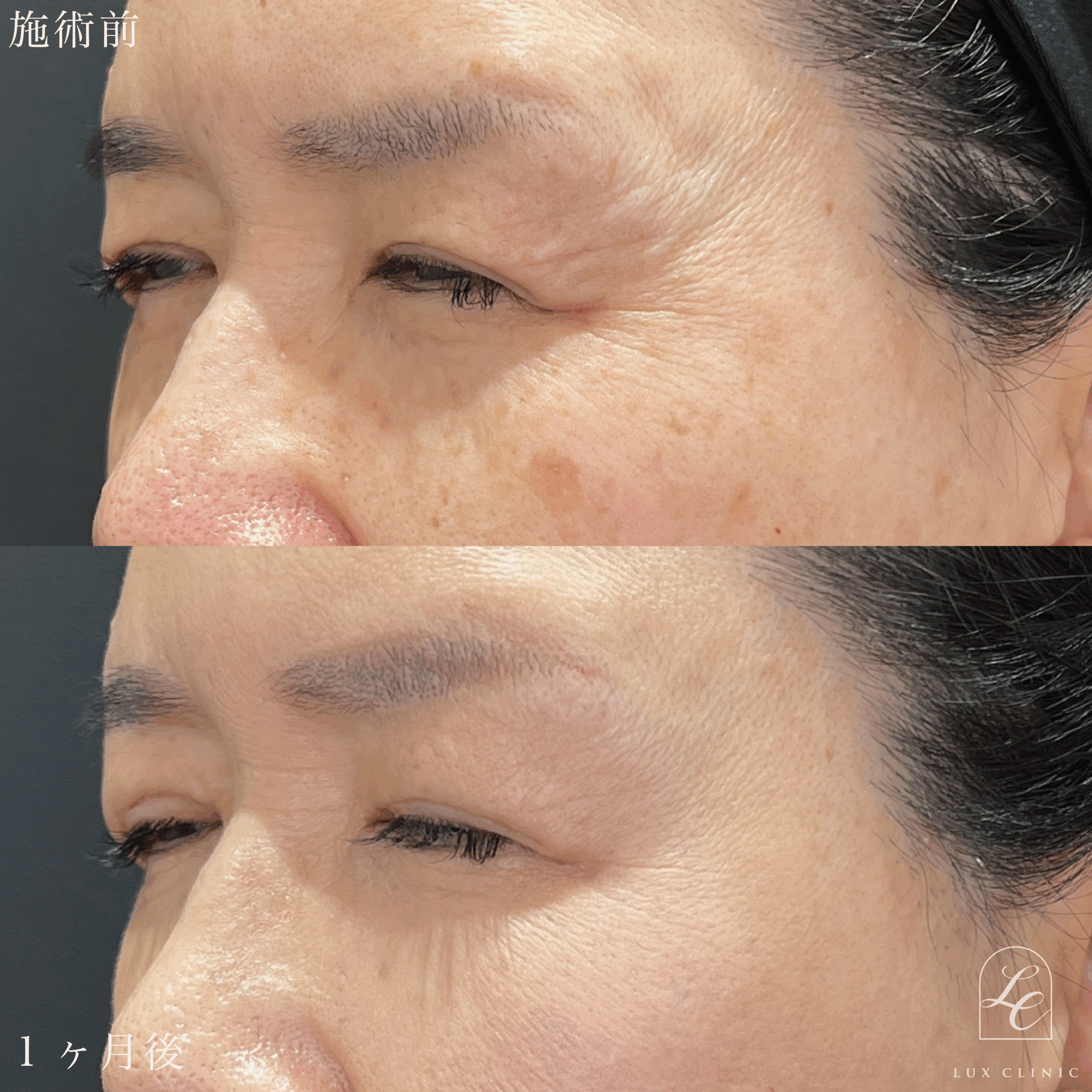 ◆表ハムラ:下まぶたの皮膚表面を切開し、脂肪を移動・再配置することで、クマやふくらみ・凹みを改善します。さらに、余分な皮膚を切除することで下まぶたの皮膚たるみを同時に整えることができます。