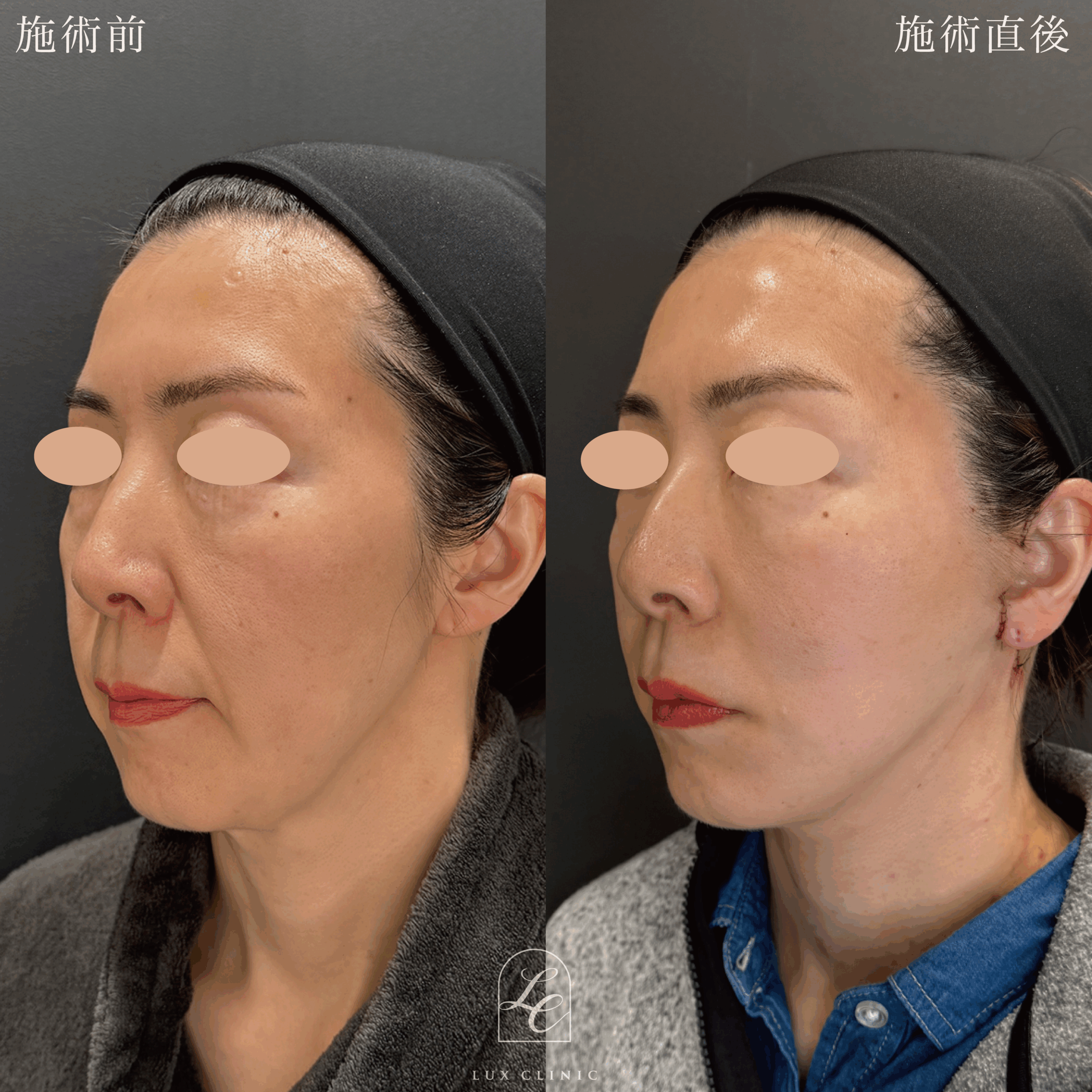 ミニフェイスリフト + Ultra-Z 脂肪吸引<あご下> + 糸リフト(BNLS Ultimate Lifting 2本)<あご下> + ヒアルロン酸(レスチレン2本)<あご、口横、鼻翼基部>