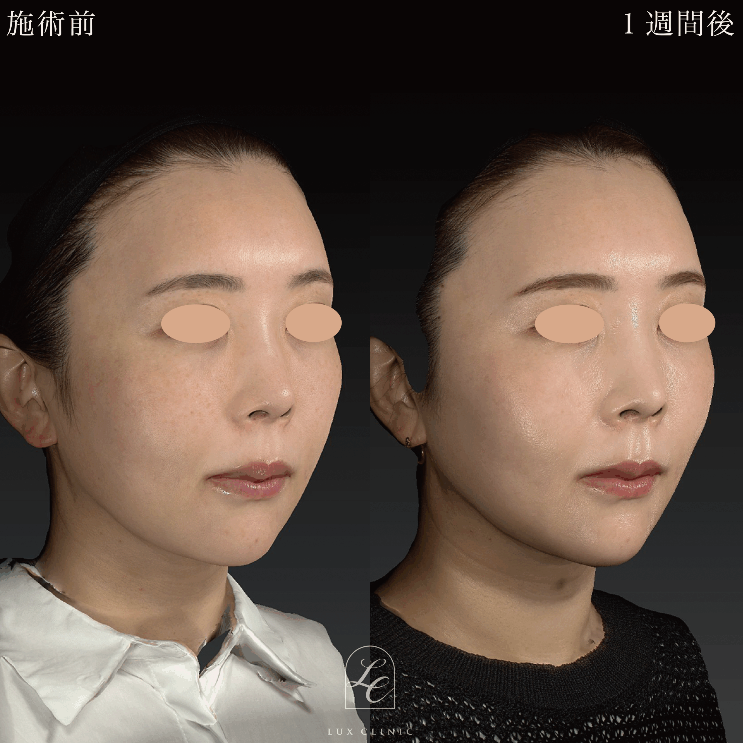 Ultra-Z 脂肪吸引<頬、あご下>+ 糸リフト(テスリフト 10本・Fiora thread Double arm 4本)+HIFU<全顔、目周り>+ボルニューマー<全顔>+ヒアルロン酸(レスチレン 6本)<額、眉間、こめかみ、鼻翼基部、口角、あご>