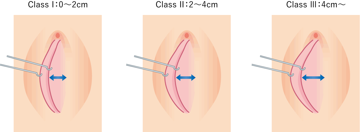 肥大した小陰唇の余分な部分を切除し、キレイに縫合することでお悩みを解決することができます。 小陰唇の形が自然でなだらかになるようデザインし、余分な部分を切除します。 先端をV字に切除し縫合することで、端が分厚くならずに傷あとも目立たない仕上がりになります。